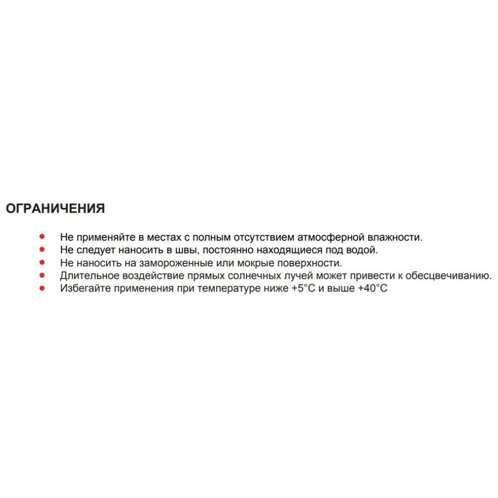 | Температура применения, °C | от +5°C до +40°C |