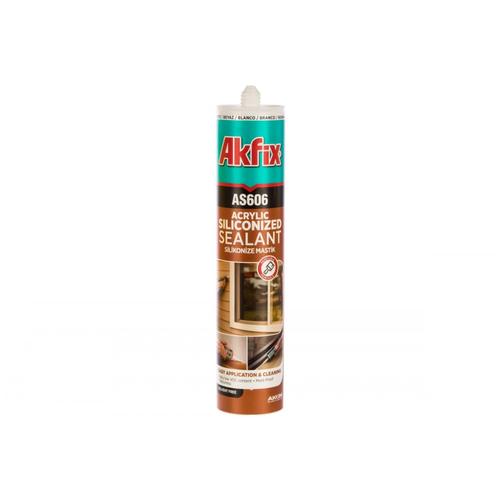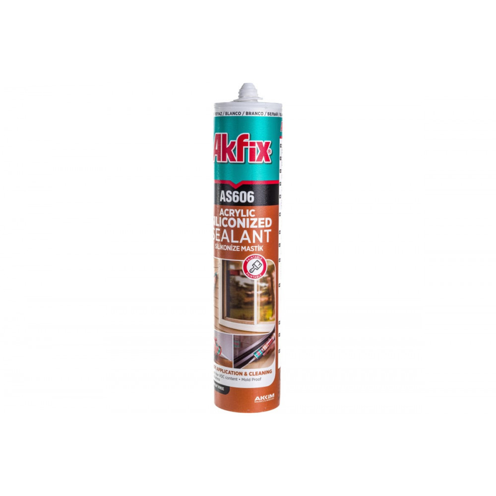Силиконакриловый герметик AS606, 310мл белый AKFIX идеально подходит для герметизации и заполнения швов между различными строительными и отделочными материалами, а также для уплотнения оконных и дверных рам.