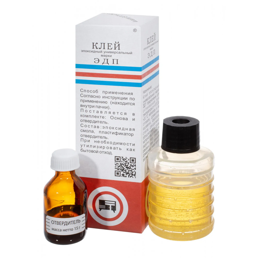 Клей эпоксидный универсальный марки ЭДП предназначен для склеивания при температуре от +10°С до +30°С металлов и их сплавов, древесины, керамики, фарфора, стекла, декоративно-облицовочных и других материалов, а также для заделки пор, трещин, раковин при ремонте домашнего инвентаря и автомобилей. Приготовленный клей годен к использованию в течение 1.5-2 часов. Для полного отверждения при комнатной температуре 20-25°С требуется 24 часа. Свойства: характеризуется очень высокой механической прочностью, малой усадкой, высокой адгезией к материалам, влагостойкостью, отличными электроизоляционными свойствами.