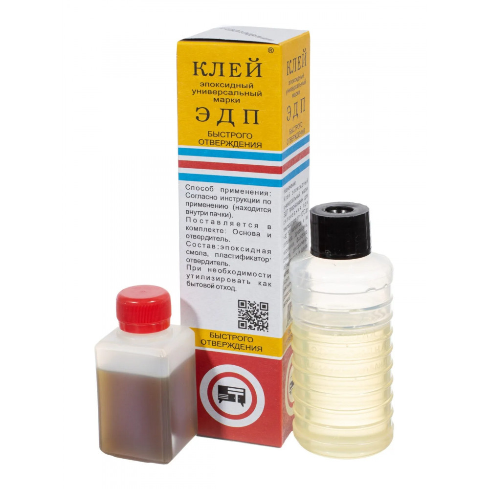 Клей эпоксидный универсальный марки ЭДП быстрого отверждения предназначен для склеивания при температуре от +10°С до +30°С металлов и их сплавов, древесины, керамики, фарфора, стекла, декоративно-облицовочных и других материалов, а также для заделки пор, трещин, раковин при ремонте домашнего инвентаря и автомобилей.
