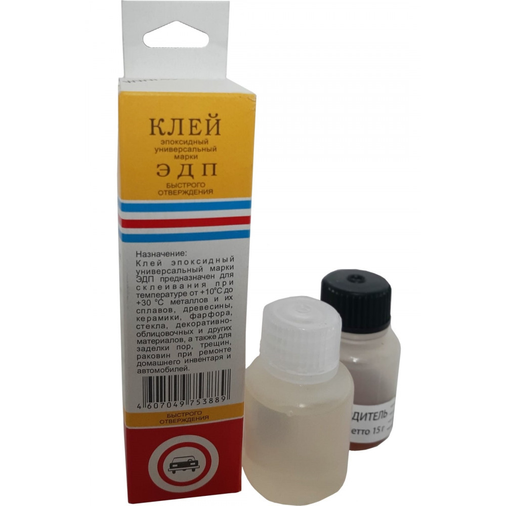 Клей эпоксидный универсальный марки ЭДП быстрого отверждения предназначен для склеивания при температуре от +10°С до +30°С металлов и их сплавов, древесины, керамики, фарфора, стекла, декоративно-облицовочных и других материалов, а также для заделки пор, трещин, раковин при ремонте домашнего инвентаря и автомобилей.