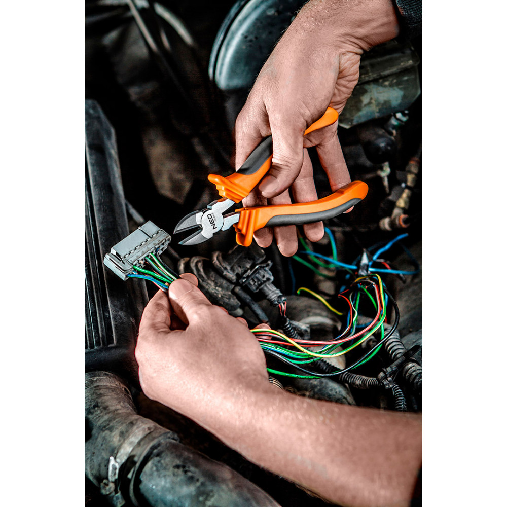 Боковые кусачки 01-017 от NEO – универсальный инструмент, предназначенный для разрезания проводов, проволоки, разрезания отдельных составляющих кабелей, для выполнения небольших резов металла, пластмассы во время монтажа/демонтажа оборудования. Режущие кромки обеспечивают эффективную резку за счет того, что произведены из высококачественной стали и подвергнуты индукционной закалке (55-60 HRC). С целью обеспечить комфорт и удобство работы инструмент имеет двухкомпонентные, эргономичные рукоятки. Купить бокорезы 01-017 NEO – это значит гарантировать себе не только эффективную, но и комфортную работу. 25-летняя гарантия производители и сертификат TÜV подтверждают качество инструмента. Бренд NEO зарекомендовал себя с отличной стороны и имеет армию поклонников в числе профессионалов.
