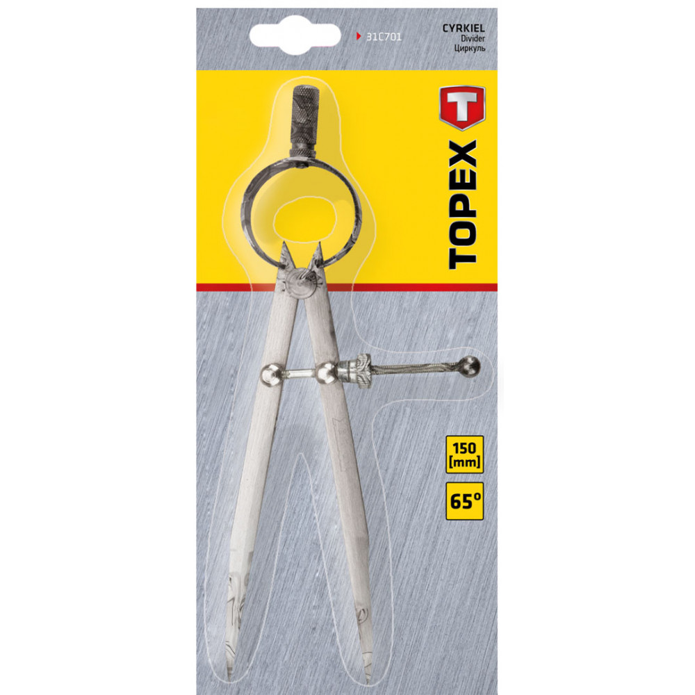 Слесарный циркуль TOPEX длиной 150 мм, максимальным радиусом 160 мм и углом 65°. Применяется, главным образом, в слесарных работах. Бренд TOPEX предназначен для домашних мастеров.