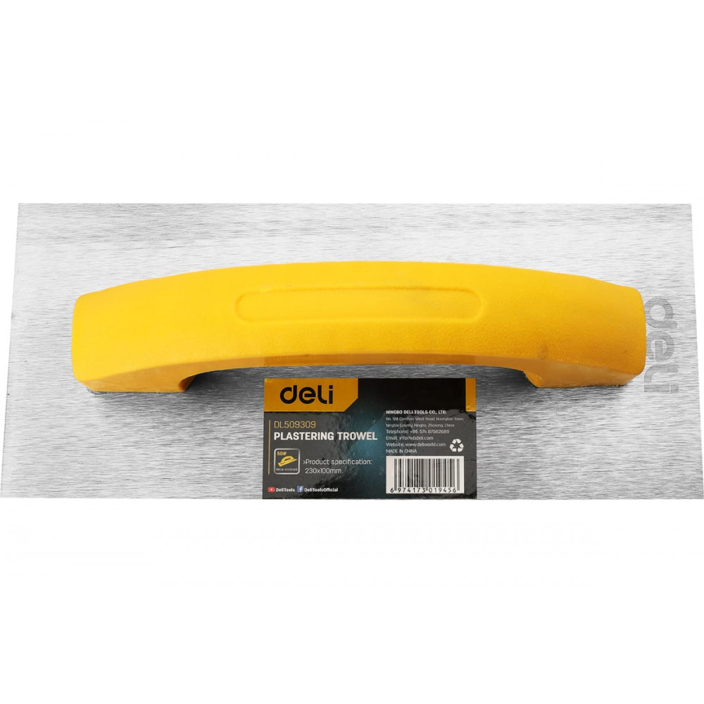 Мастерок DL509309 кельма штукатурная, прямоугольная 230х100мм, Deli - это надежное и качественное изделие, которое поможет вам быстро и эффективно нанести штукатурку на любую поверхность.