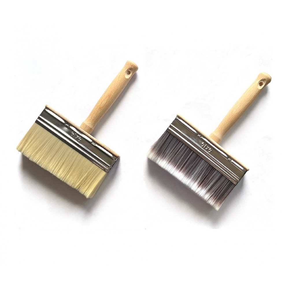 Данная модель оснащена деревянной ручкой с отверстием для подвешивания. В основе лежит искусственный ворс – нейлон, не поглощающий окрасочный материал, а напротив, отталкивая влагу, сохраняя свою первоначальную структуру.