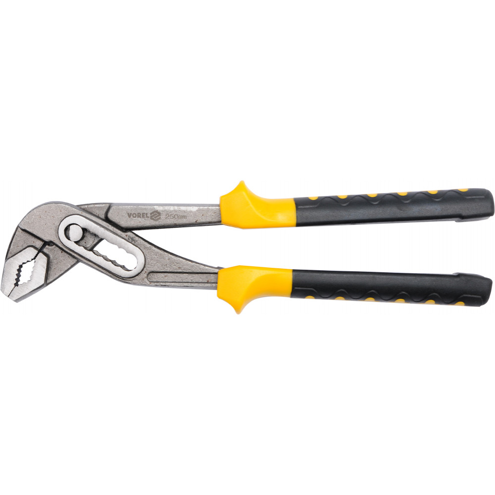 Переставные клещи 40057 от VOREL используются во время работы с различными водопроводными насосами и трубами. Специфическая форма этого инструмента позволяет передавать необходимую силу в процессе монтажа и демонтажа труб, а удобные ручки обладают специальным покрытием, которое предотвращает скольжение.