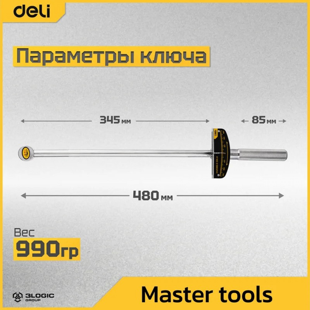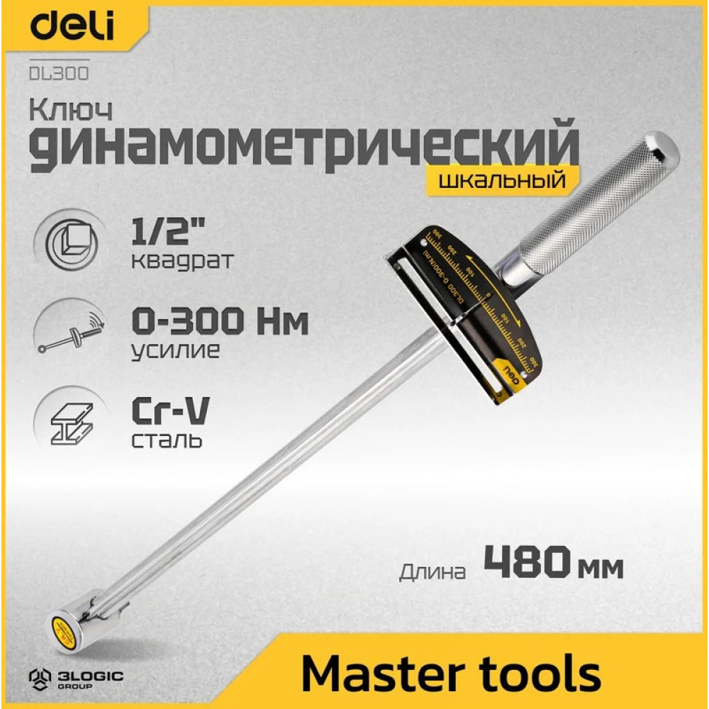 Ключ DL300 динамометрический 0-300Нм, 1/2" длина 480мм Deli - это надежный и удобный инструмент для работы с резьбовыми соединениями.