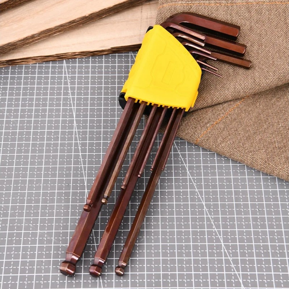 В комплекте вы получаете 9 имбусовых (шестигранных) ключей, что позволяет выполнять широкий спектр работ, требующих использования шестигранных ключей.