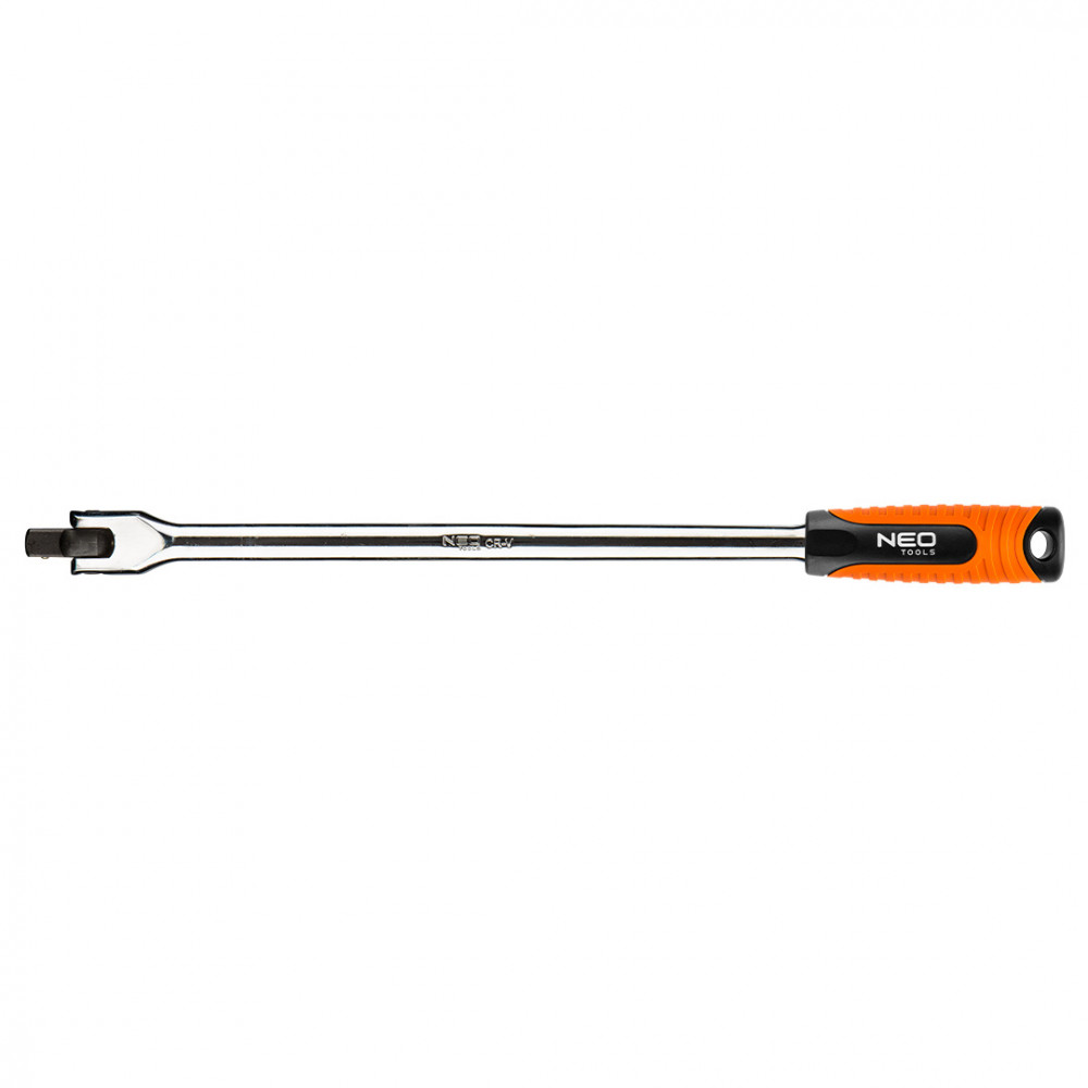 Рукоятка с шарниром 1/2" от TM NEO изготовлена из прочной хромованадиевой стали. Эргономичная двухкомпонентная форма рукоятки снижает утомляемость во время работы.