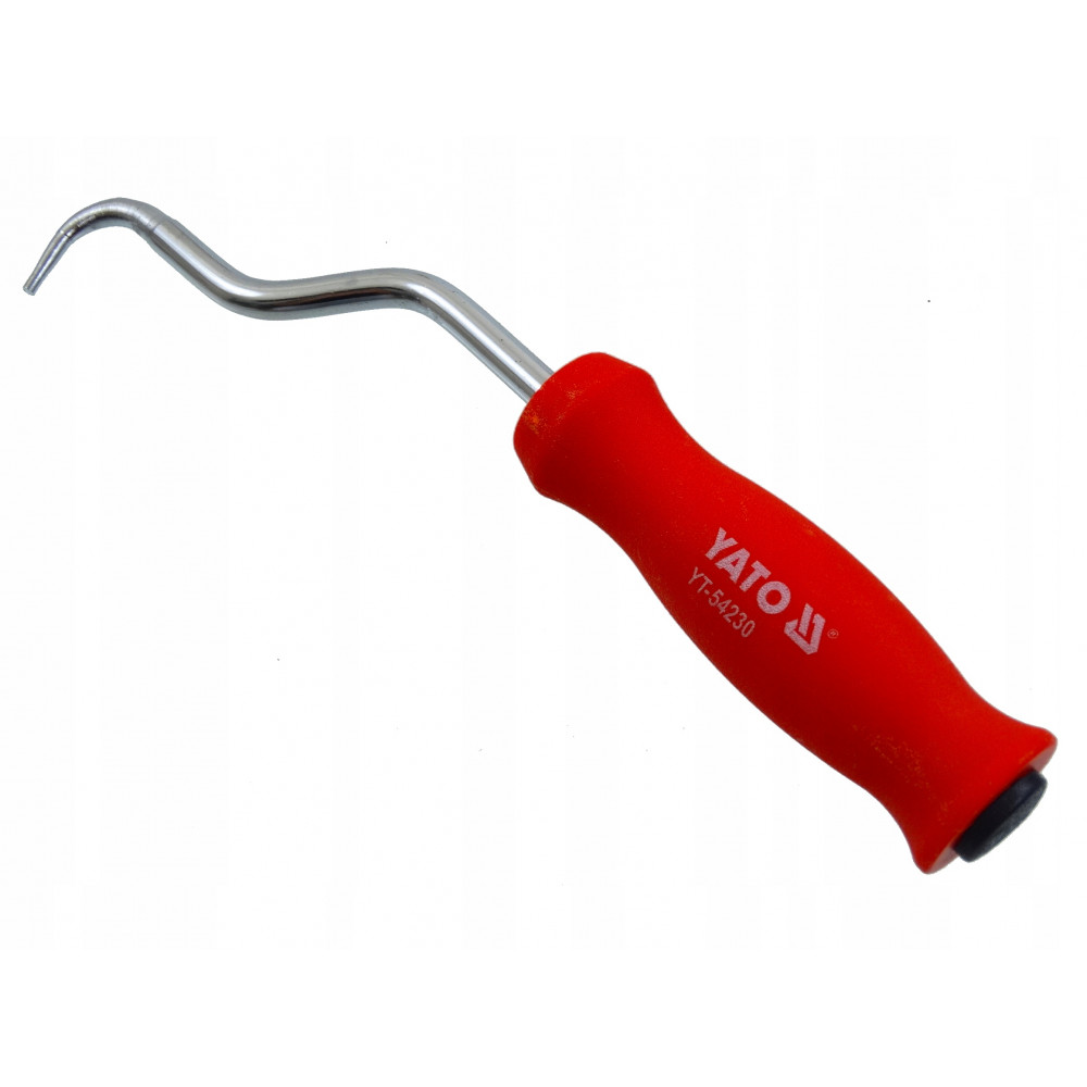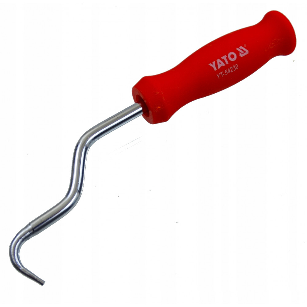 YT-54230 состоит из пластиковой ручки со встроенным в нее стальным крючком из нержавеющей стали диаметром 7,5 мм. Подшипник в ручке обеспечивает свободное и быстрое вращение крюка, продлевая срок службы инструмента.