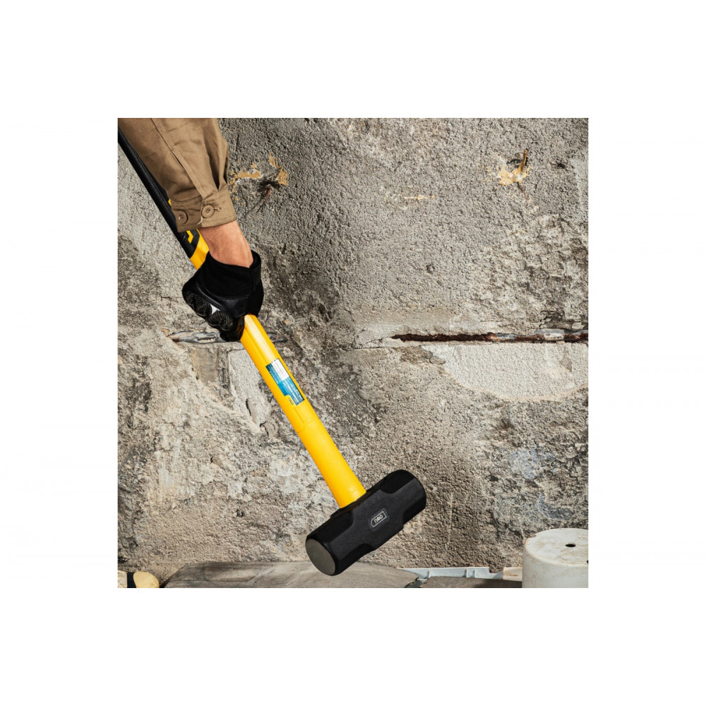 Кувалда имеет удобную форму рукоятки, которая обеспечивает надежный захват и контроль над инструментом во время работы. Также она имеет дополнительную защиту от ударов и повреждений, так как ручка изготовлена из прочного фибергласа.