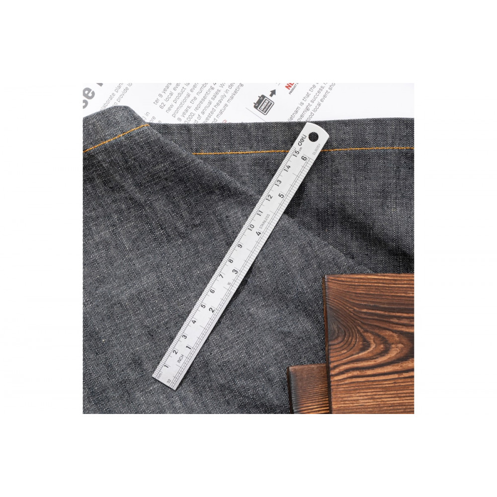 Линейка DL8015Y стальная 150мм, Deli отличается долговечностью и устойчивостью к коррозии, что делает ее надежным и долговечным инструментом.
