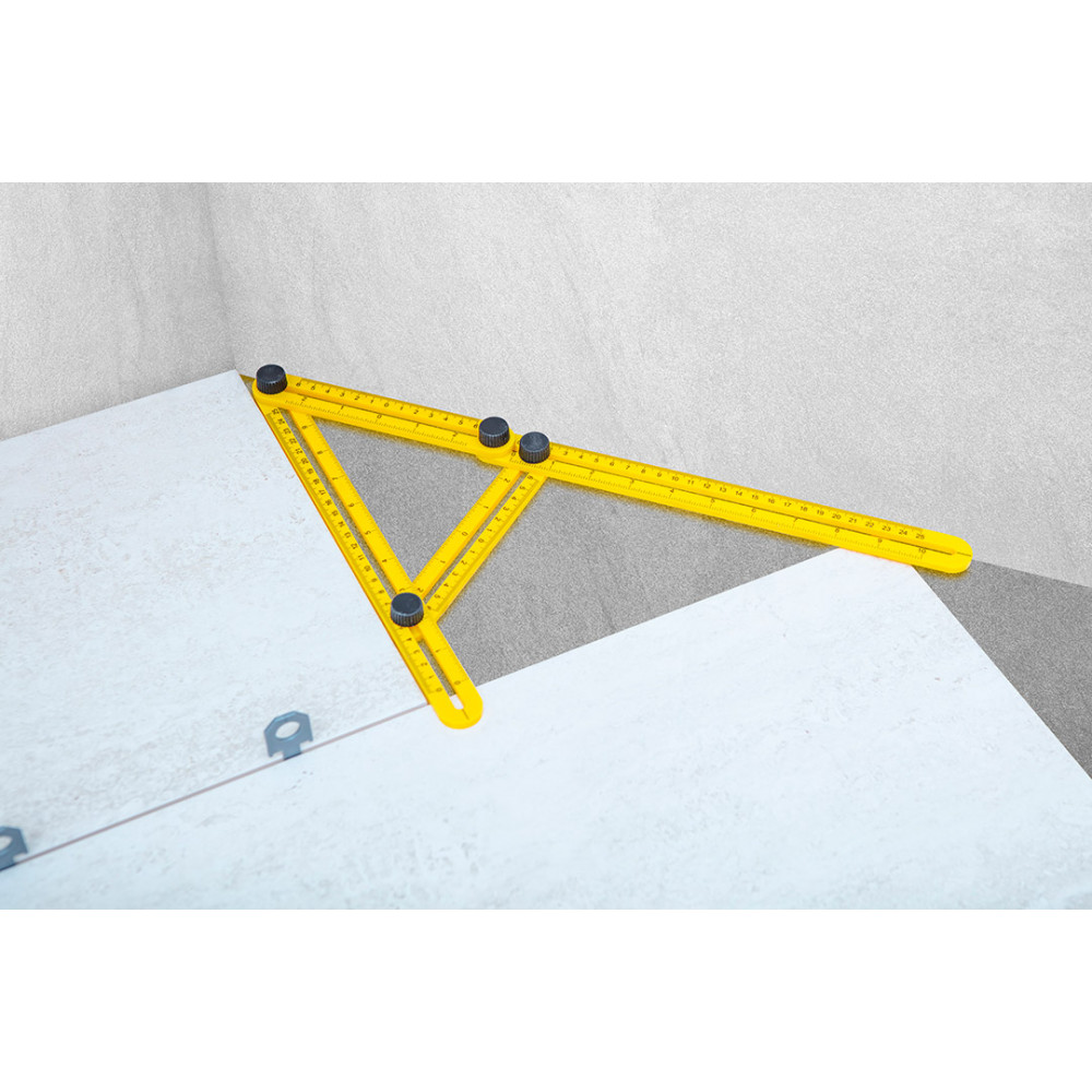 Можно быстро отмерить кусок плитки или брусчатки и перенести данный размер в другое место. Инструмент легкий и его удобно хранить - в сложенном состоянии занимает немного места. Благодаря отверстиям вдоль шкалы можно разметить линию, например, авторучкой.