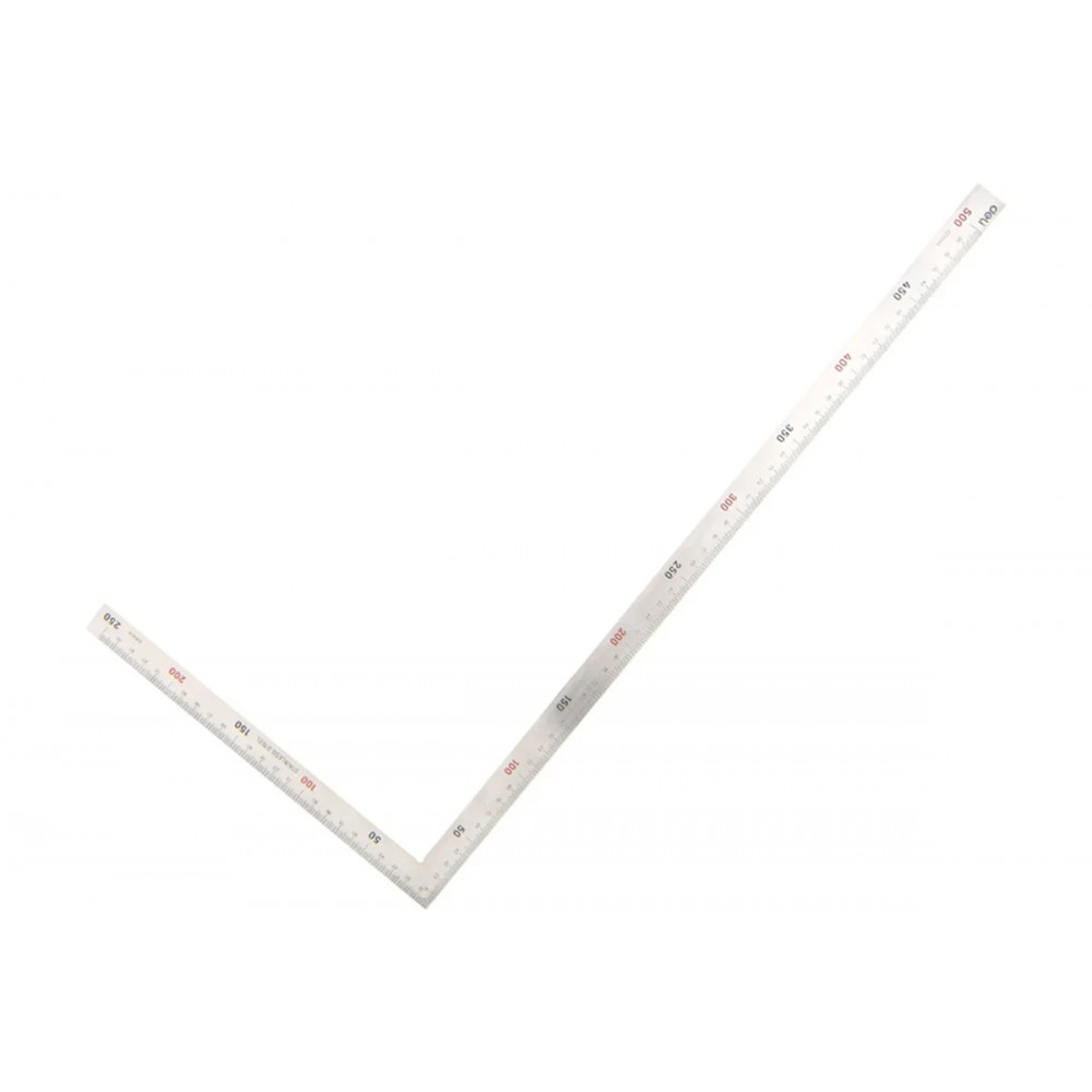 Угольник двусторонний цельнометаллический Deli DL7150 (250 × 500 мм) — измерительный инструмент для разметки и контроля прямых углов.