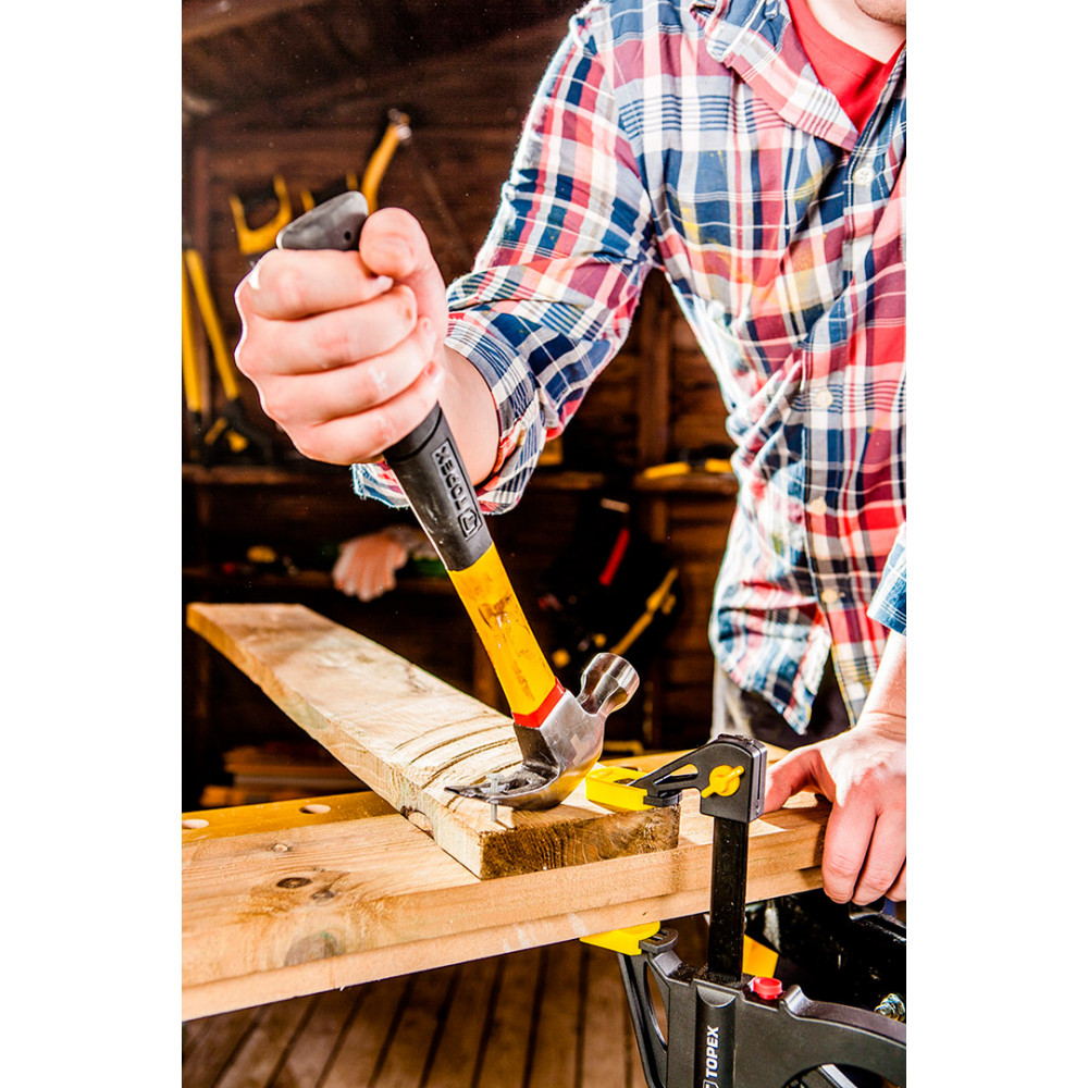 Молоток столярный TOPEX предназначен, главным образом, для точного забивания гвоздей, поэтому головка с одной стороны имеет маленькую круглую ударную часть, а с другой стороны - гвоздодер. Рукоятка из стекловолокна - материала, очень стойкого к изменениям температуры, влажности и механическим повреждениям, что имеет большое значение при работе в мастерской. Благодаря прорезиненной рукоятке эргономичной формы работать с инструментом очень удобно. Гарантией высокого качества является исполнение инструмента в соответствии со стандартом DIN 7239. Бренд TOPEX предназначен для домашних мастеров.