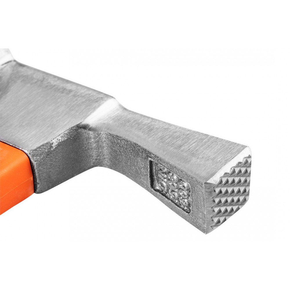 Молоток каменщика 25-133 от NEO предназначен для ремонтных и строительных работ. Он отличается двумя наконечниками разной формы. Его применяют для сбивания штукатурки, разбивания кирпичей, колки и забивания. Обух подвергался индукционной закалке и полировке лазером. Дополнительно покрыт лаком.