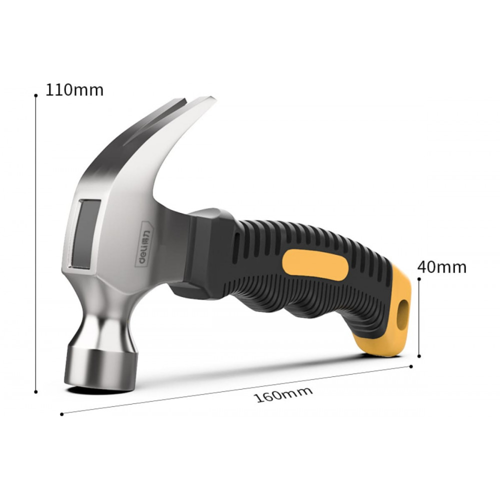 Молоток-гвоздодер DL441008 укороченный 250 гр, 160 мм, фиберглассовая рукоять DELI