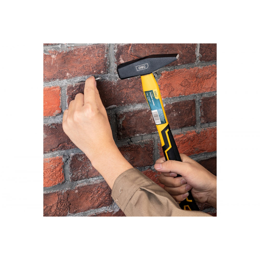 Молоток DL442005 слесарный 500гр, фиберглассовая рукоять, Deli– это надежный и удобный инструмент для работы в мастерской или на стройке. Рукоятка выполнена из фибергласса, что обеспечивает прочность и легкость молотка. Это позволяет работать с ним без усталости в течение длительного времени.