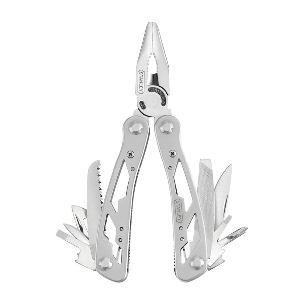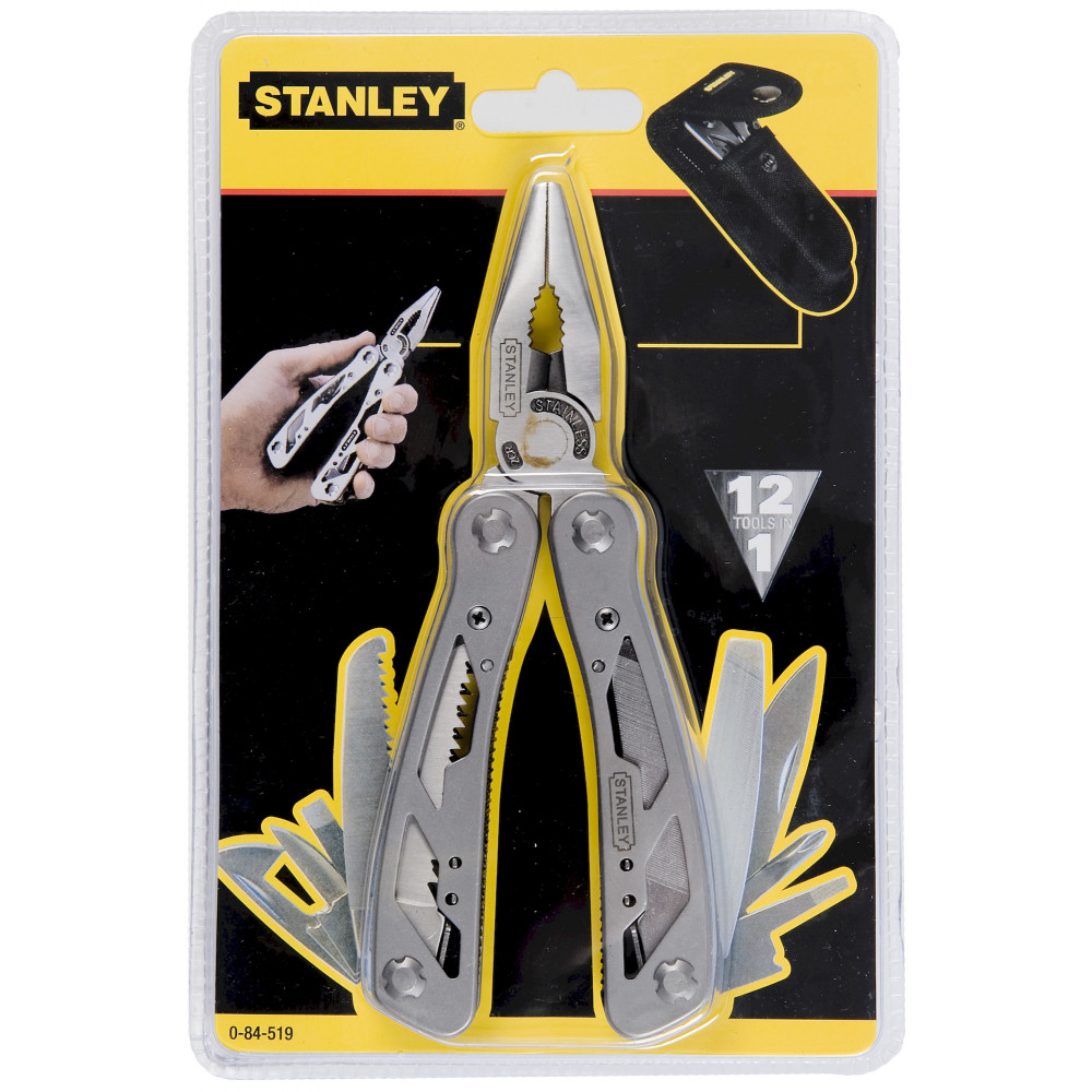 Мультифункциональный инструмент 0-84-519 от STANLEY представляет собой превосходный комплект из двенадцати различных приспособлений, соединенных с плоскогубцами, которые являются основным инструментов в этом наборе. Данное универсальное устройство поможет своему пользователю выполнять самые разные функции, связанные как с профессиональной деятельностью или работой по дому, так и различными видами активного отдыха на природе.