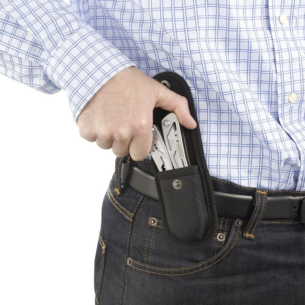 Этот инструмент отличается своей очень хорошо продуманной складной конструкцией, которая настолько компактна, что в закрытом состоянии его длина составляет всего лишь 105 мм, а в открытом 165 мм. Это позволяет носить инструмент с собой без каких-либо затруднений или неудобств. Все элементы, доступные пользователю, аккуратно вложены в рукоятку и их можно легко доставать в любой момент. Вместе с инструментом идет специальный чехол, в котором его можно комфортно хранить и носить на поясе.