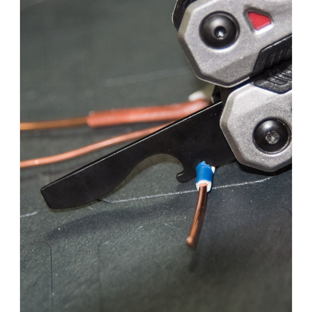 Помимо упомянутого кольца для ношения, прибор также оборудован пружинными плоскогубцами, с помощью которых можно как работать с различными гайками или другими мелкими деталями, так и перекусывать провода и проволоку.