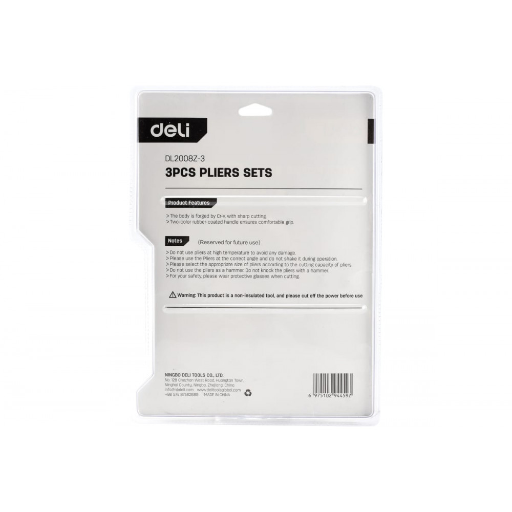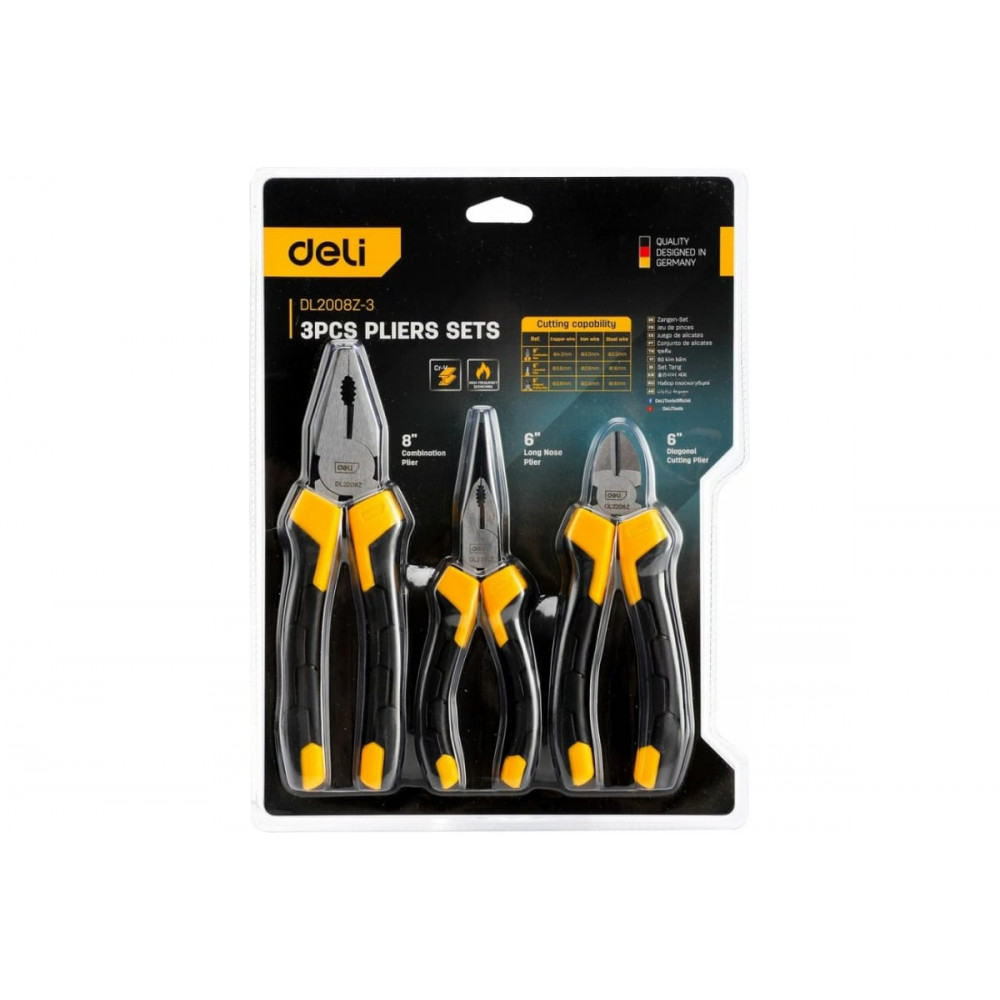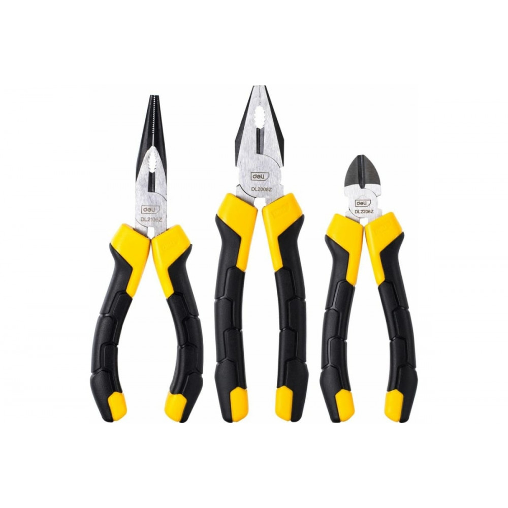 Набор DL2008Z-3 шарнирно-губцевого инструмента, Deli изготовлен из высококачественной инструментальной стали, что гарантирует его прочность и долговечность. Инструменты проходят закалку и отпуск, что увеличивает их твердость и износостойкость, а также повышает срок службы всего набора.