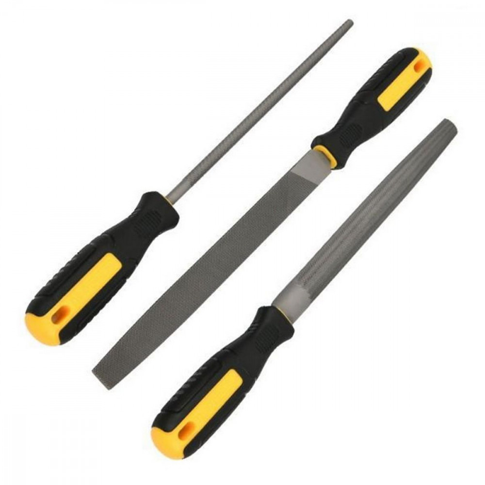 Все напильники оснащены обрезиненными рукоятками, которые обеспечивают комфортное и безопасное использование. Рукоятки выполнены из прорезиненного пластика, что предотвращает скольжение инструмента из рук и обеспечивает надежный хват.