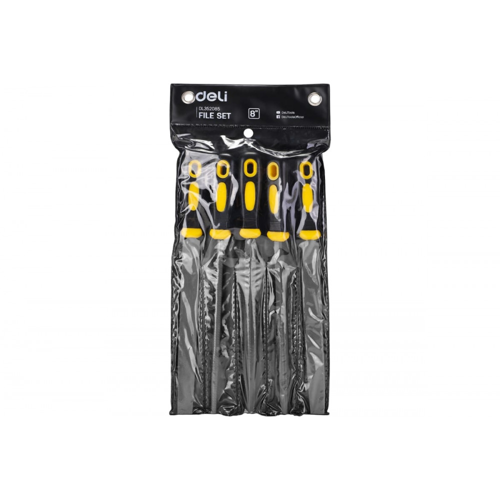 Набор DL352085 напильников 5шт, Deli - это высококачественный набор, который состоит из пяти напильников разных размеров для различных задач по обработке материалов. Этот набор напильников имеет обрезиненную пластиковую рукоятку, которая обеспечивает удобный и надежный захват во время работы.