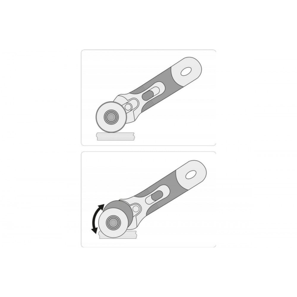 Нож с вращающимся лезвием используется в переплетном, портняжном, ремесленном деле. Он позволяет резать ткани и бумагу как прямо, так и изогнуто.