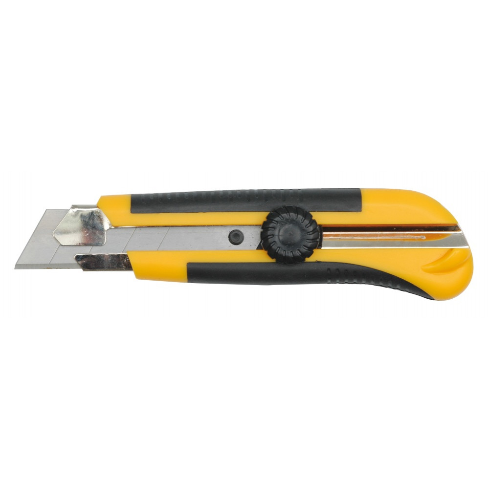 Этот нож с резинопластиковой ручкой можно эффективно применять для резки самых разных материалов и поверхностей: бумага, картон, резина, различные виды обоев или линолеума и многое другое. Благодаря своей высокой прочности, легкости и удобной конструкции, этот нож может стать незаменимым инструментом. Кроме того, его лезвия выполнены из качественной инструментальной стали и защищены от коррозии, а ручка очень удобно ложится в руку.