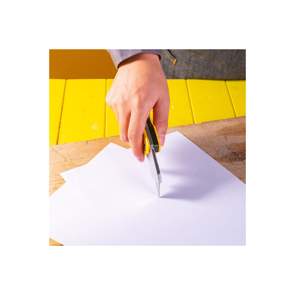 Эргономичная рукоятка из цинкового сплава оснащена специальным отсеком для хранения дополнительных лезвий, которые всегда под рукой благодаря встроенной кнопке. Металлическая клипса позволяет удобно закрепить нож на поясе, чтобы он был всегда под рукой во время работы. В комплекте с ножом поставляются 5 запасных лезвий.