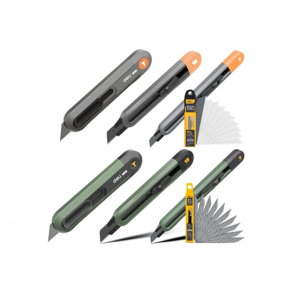 Технический нож HT4018C от торговой марки DELI - идеальный выбор для профессионалов и домашних мастеров, ценящих качество и надежность в своем инструменте. Лезвие изготовлено из высококачественной стали SK-2, обеспечивающей непревзойденную остроту и продолжительный срок службы. Специальное покрытие корпуса Soft Touch гарантирует комфорт и безопасность при работе, а также устойчивость к повреждениям и атмосферным воздействиям.