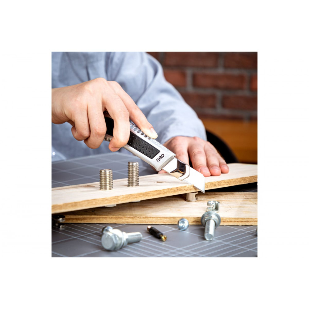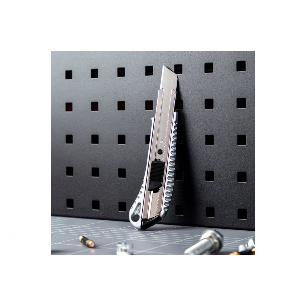 Универсальный нож DL4255 с лезвием шириной 18 мм - идеальный инструмент для резки различных материалов в профессиональных и бытовых условиях. Корпус изготовлен из высокопрочного алюминиевого сплава, обеспечивающего долговечность и надежность. Острое лезвие из инструментальной стали SK2 обеспечивает качественный и точный рез.