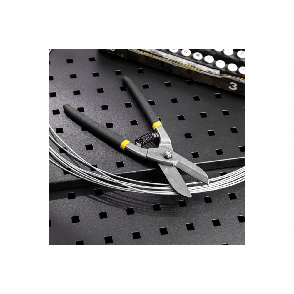 Приспособление обладает эргономичными ручками с антискользящим эффектом для удобства использования. Подходит для профессиональных и бытовых нужд. Имеется возможность снять возвратную пружину.Легко справляется с холоднокатаным листом до 0.8 мм толщиной или нержавеющей сталью до 0.5 мм толщиной.