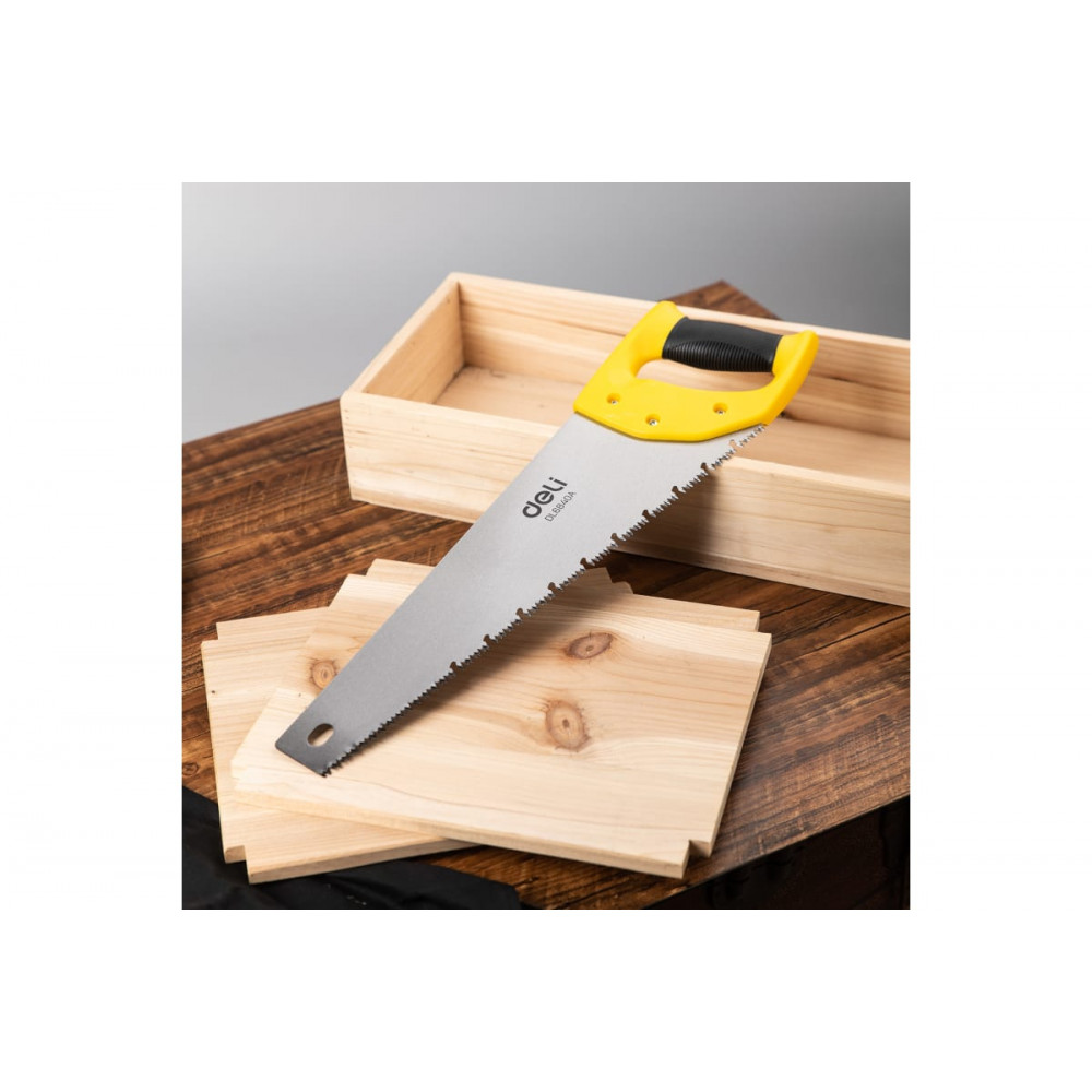 Ножовка DL6840A по дереву 400мм, Deli предназначена для быстрой и эффективной распилки древесины различных пород. Длина лезвия составляет 400 мм, что позволяет работать с крупными деревянными заготовками. Лезвие ножовки проходит специальную термическую обработку, благодаря которой увеличивается его прочность и долговечность.