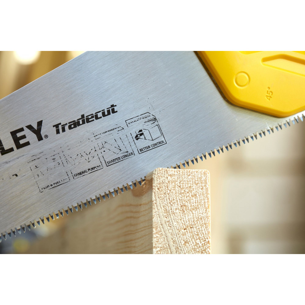 Ножовка STHT20348-1 Tradecut от STANLEY имеет высокую степень износостойкости благодаря полированному покрытию рабочего полотна, которое длительное время сохраняет эффективность инструмента и защищает от образования коррозии. Этой ножовкой можно пользоваться при различных углах, например, в 45 или 90 градусов, с одинаковой эффективностью. Инструмент прекрасно подойдет и для профессионального использования, и для бытовых нужд.