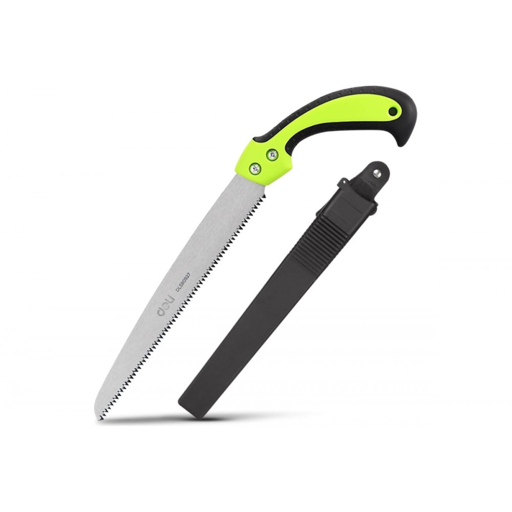 Садовая пила с ножнами DL580927 270мм, Deli представляет собой надежный и удобный инструмент для ухода за садом и огородом. Длина пилы составляет 270 мм, а зубья имеют шаг 7TPI (количество зубьев на дюйм). Изготовлена из высококачественной стали 65Mn, что обеспечивает прочность и долговечность инструмента.