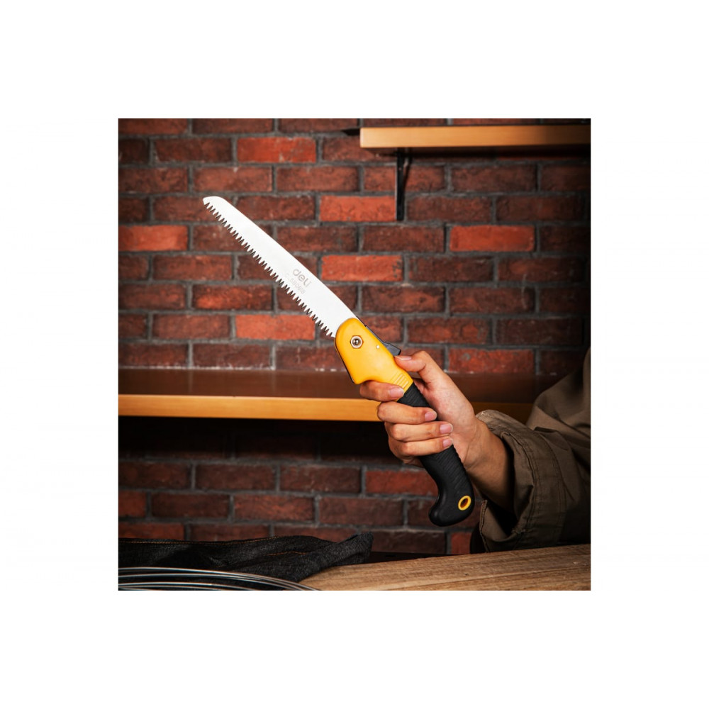 Садовая пила складная DL580618 180мм, Deli представляет собой удобный и практичный инструмент для работы в саду или на даче. Ее отличительной особенностью является складная конструкция, что обеспечивает удобство при хранении и транспортировке.