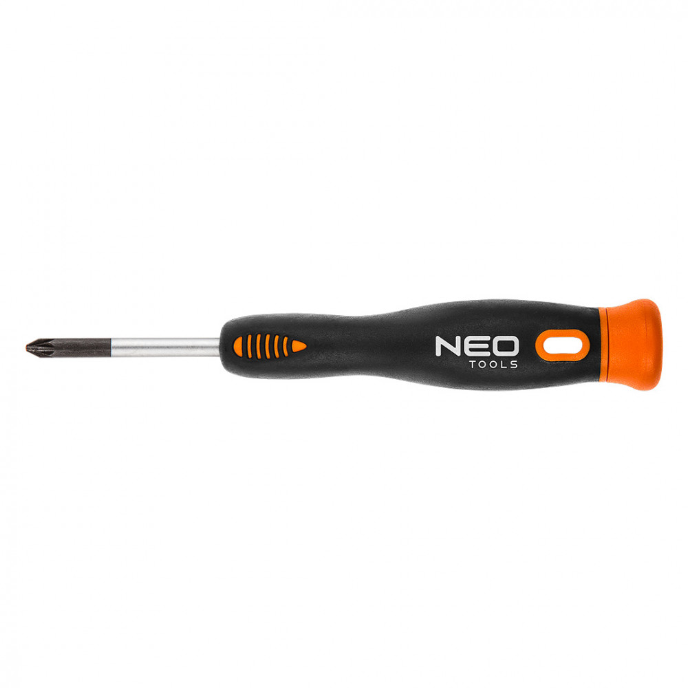 Отвертка прецизионная крестовая PZ от NEO. Стержень отвертки изготовлен из чрезвычайно прочной хромомолибденовой стали. Рабочая часть подвергнута термообработке, благодаря чему получена требуемая твердость и стойкость к изгибу. Отвертка с намагниченным жалом. Поворотная насадка в рукоятке позволяет точно затягивать болты. Двухкомпонентная рукоятка стойкая к воздействию химических веществ, масел и смазок. Качество инструмента подтверждено сертификатом TÜV и 25-летней гарантией производителя.