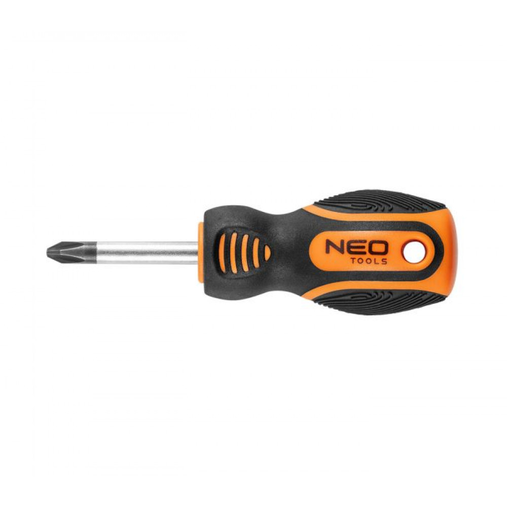 Отвертка с крестообразным наконечником PH2 x 38 мм. Новая серия отверток NEO характеризуется удобной формой рукоятки с перфорацией, имитирующей отпечатки пальцев + специальным местом для большого пальца. В верхней части рукоятки указан размер, что упрощает выбор отвертки для конкретных целей. Купить отвертку крестовую 04-179 NEO вы можете в несколько кликов на нашем сайте.