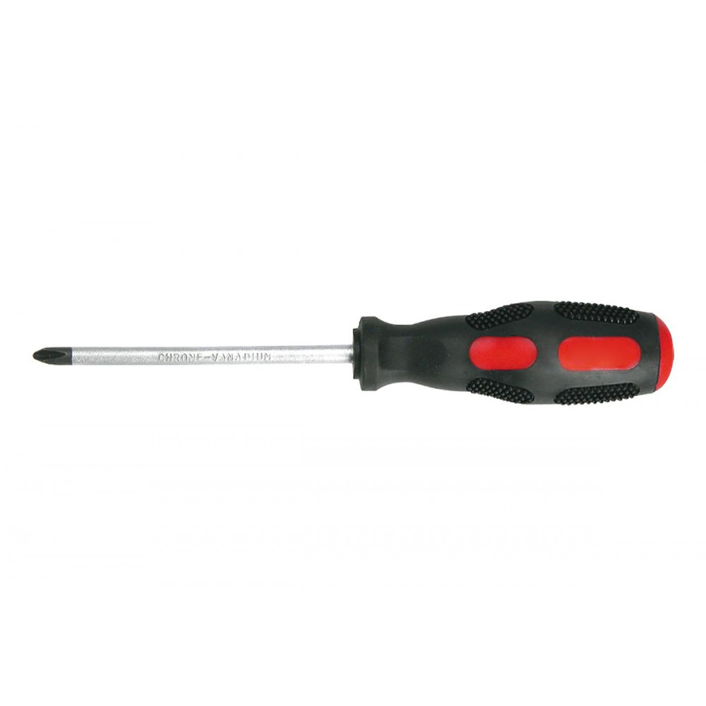 Отвёртка крестовая Top Tools имеет двухкомпонентную противоскользящую рукоятку эргономичной формы с отверстием для подвески. Жало отвертки намагничено. Отвертка предназначена для монтажа и демонтажа резьбовых соединений.