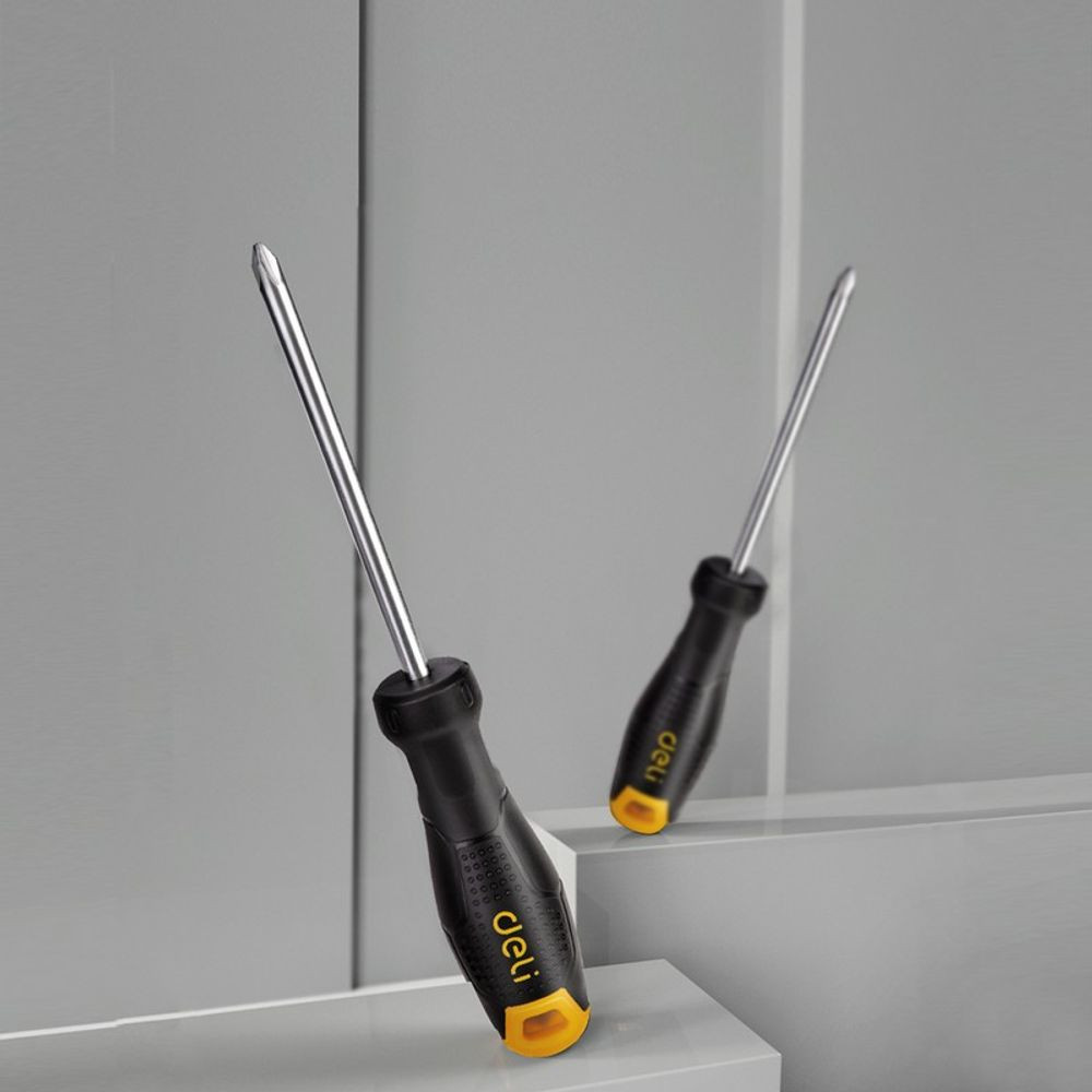 Крестовая отвертка DL625075 от ТМ DELI с наконечником PH1 и длиной стержня 75 мм используется для работы с различными видами винтов и крепежных элементов в процессе ремонтных и сборочных работ.