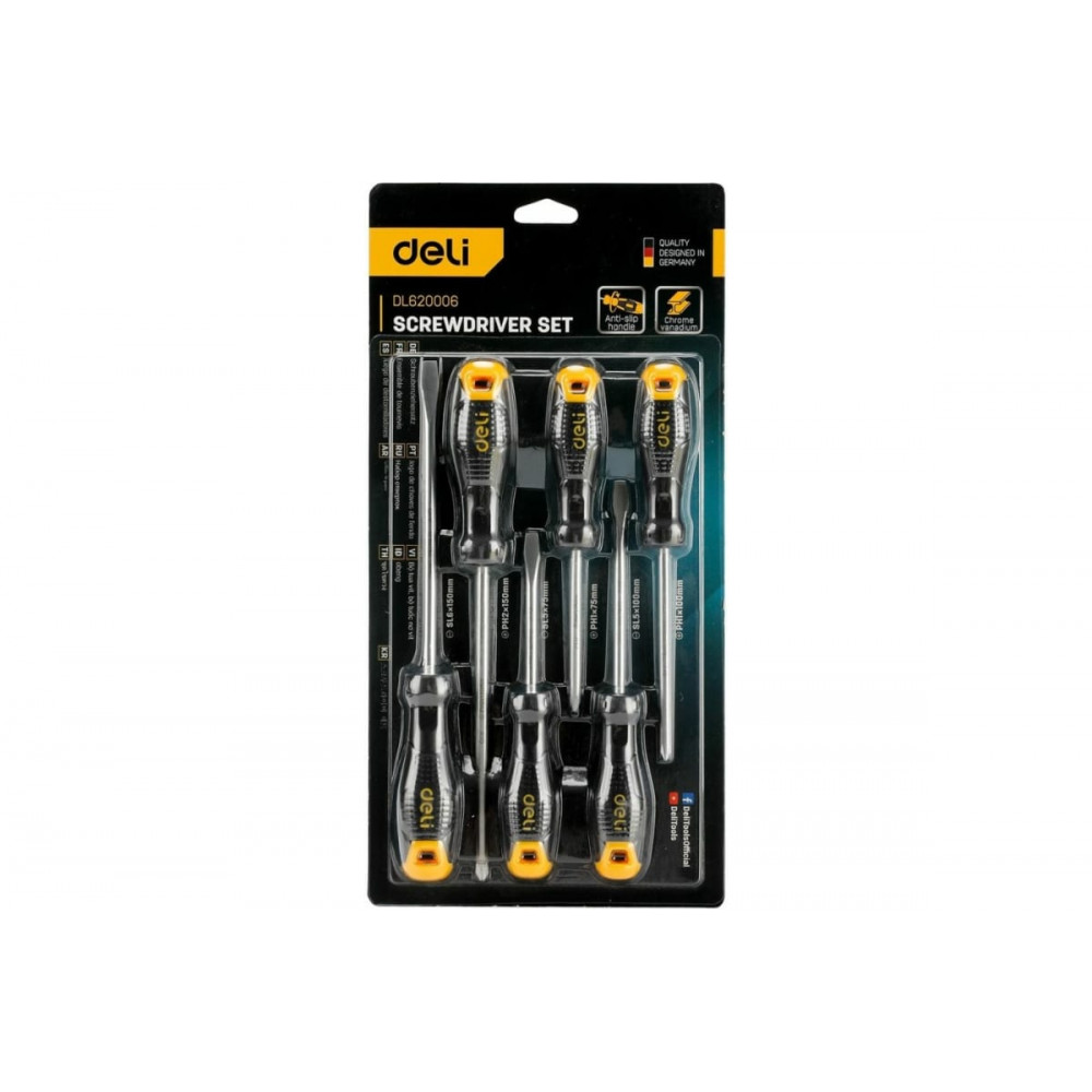 Набор отверток Deli DL620006 идеально подходит для использования в домашних условиях, на производстве или в мастерской.