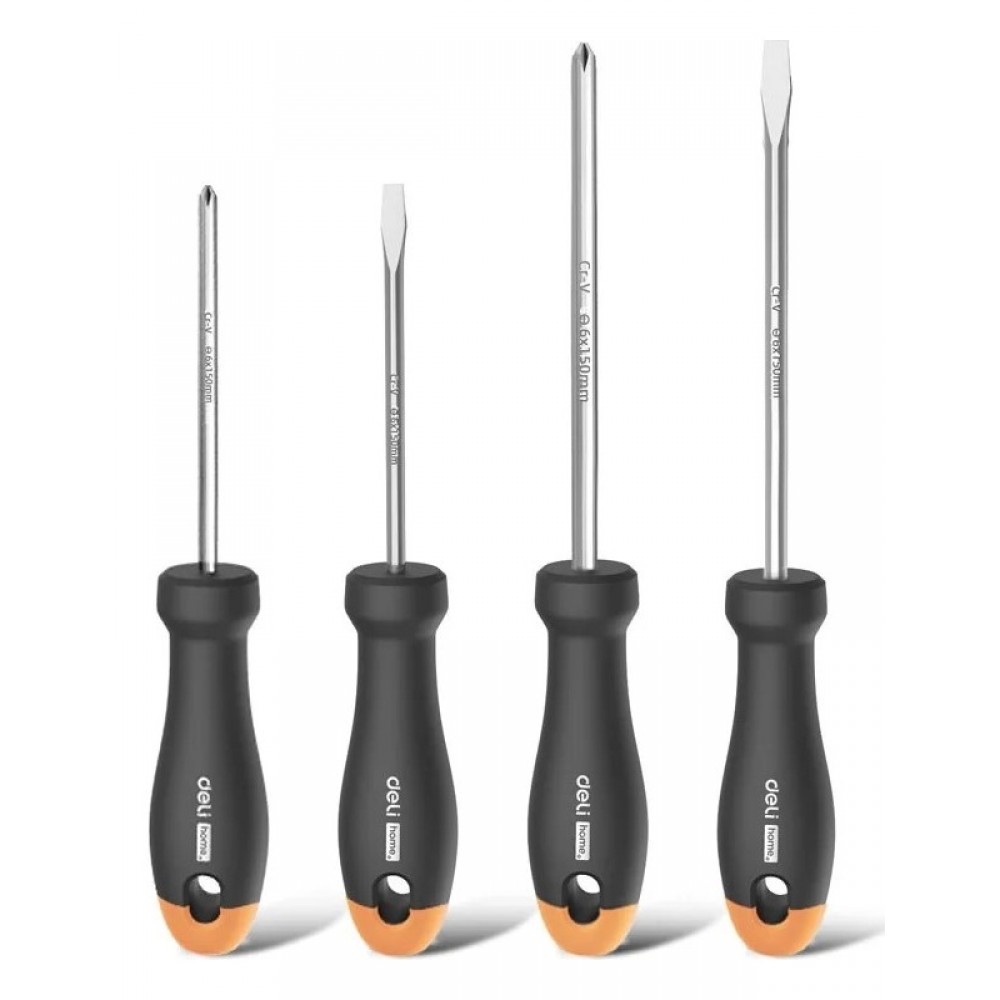 Набор HT1004C отверток "Home Series Gray" 4шт SL5x100+SL6x150+PH1x100+PH2x150, Deli