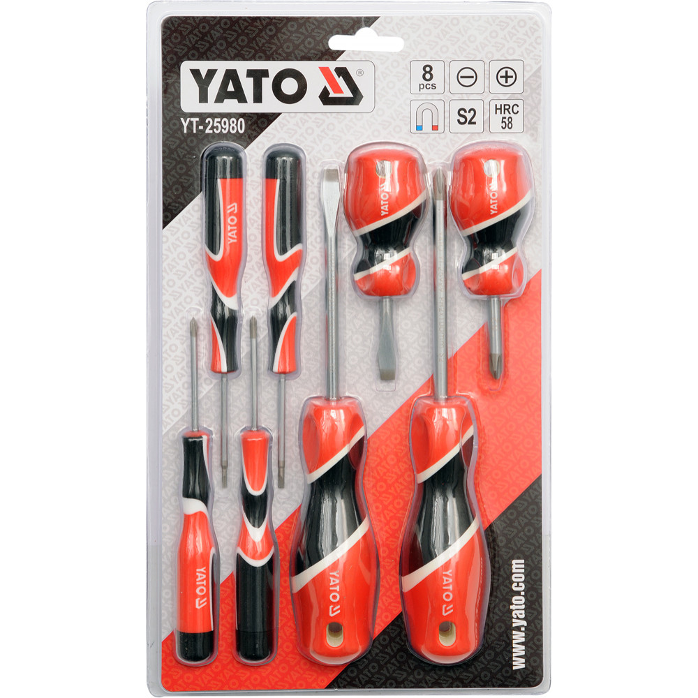 YT-25980 – это профессиональный набор из 8ми шлицевых и крестовых отверток от ТМ YATO.