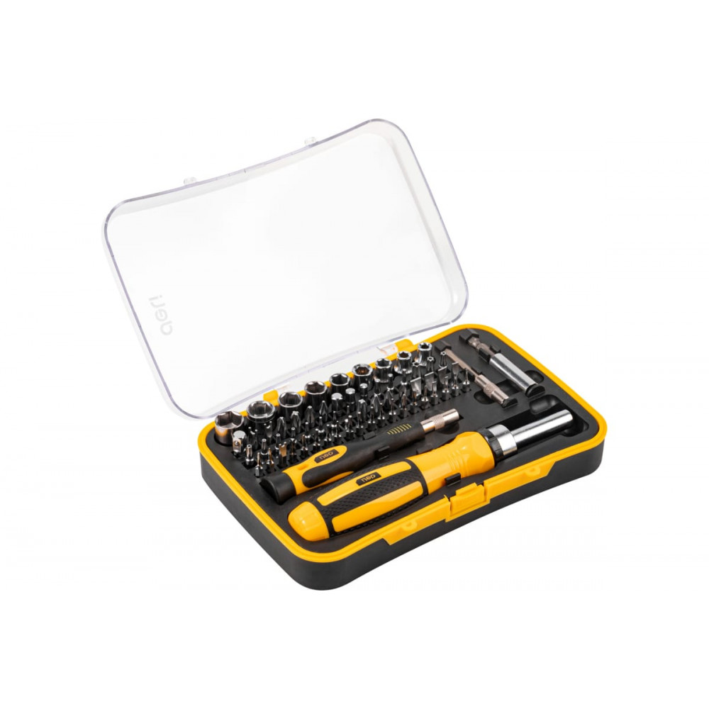 Набор DL3565 имеет трещотку с 72 зубцами, которая обеспечивает удобство работы и позволяет быстро и легко поворачивать отвертку или биту. Трещотка имеет эргономичную ручку, которая удобно лежит в руке и не скользит во время работы.
