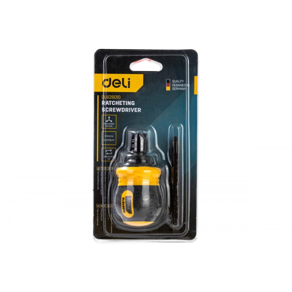 Отвёртка DL626010 2-хсторонняя с трещоткой Deli - это практичный и многофункциональный инструмент, который пригодится в любом доме.