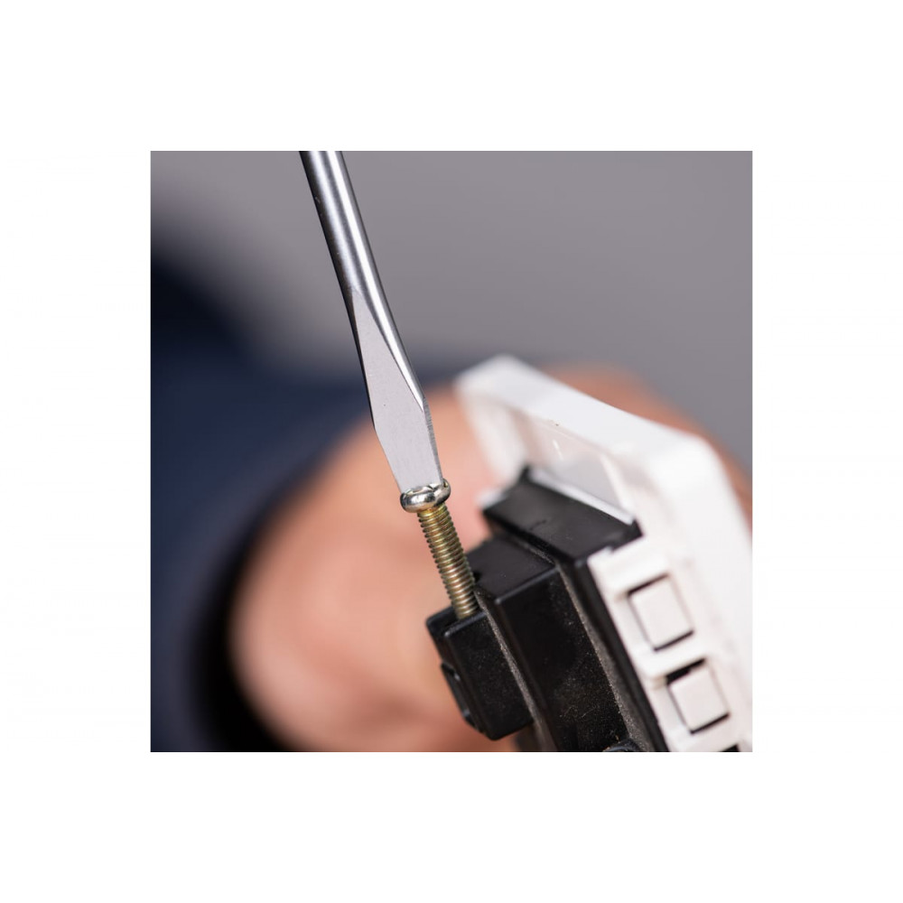 Данная отвёртка имеет шлиц 5мм, который является наиболее распространенным размером шлица и подходит для большинства типов крепежных элементов. Благодаря своей длине 150мм, отвёртка позволяет работать с крепежными элементами на большой глубине без необходимости использования удлинителей.Кроме того, данная отвёртка обладает высоким крутящим моментом, что делает её идеальным инструментом для работы с тяжелыми крепежными элементами или при необходимости приложения больших усилий.