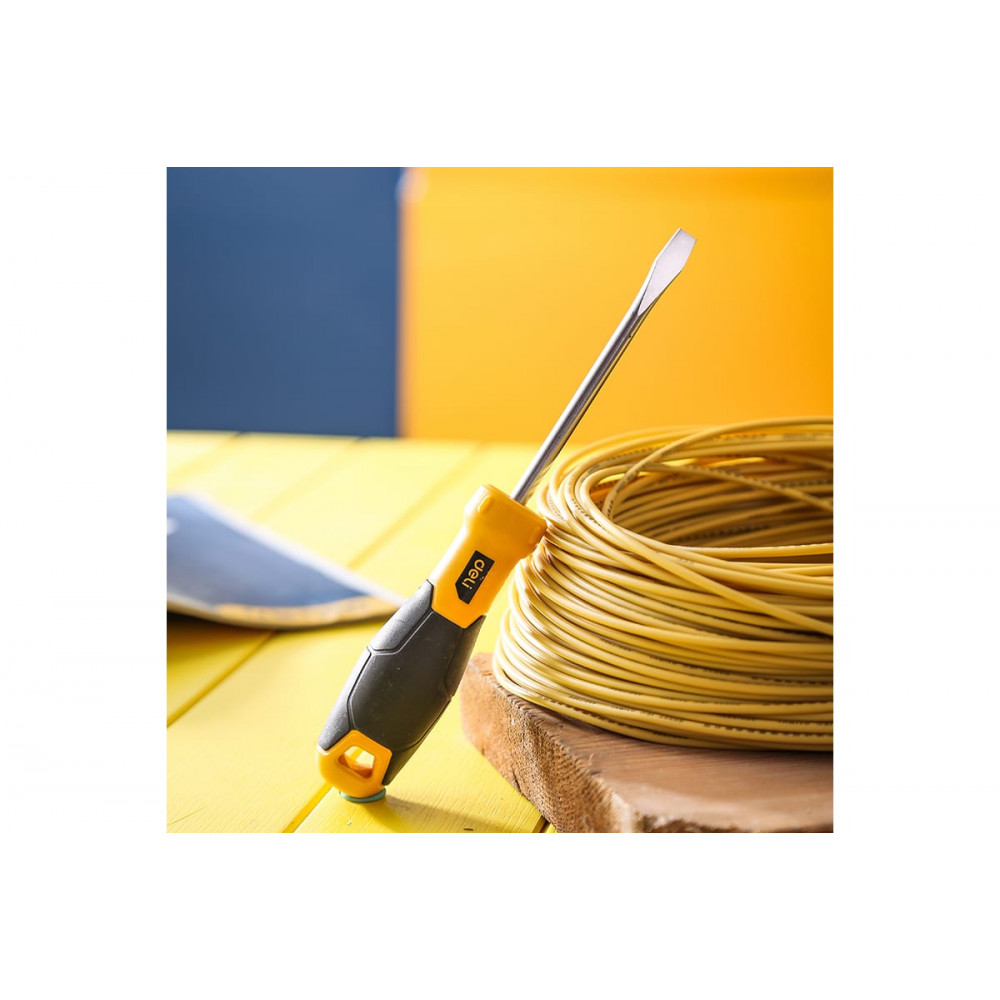 Отвёртка DL6361001 шлицевая 6x100мм CR-V Deli - это качественный и функциональный инструмент, который необходим в любом домашнем или профессиональном наборе.