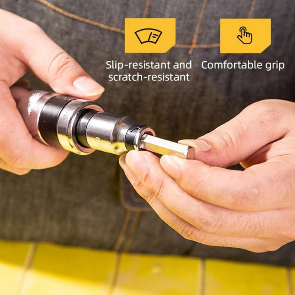 Ударно-поворотная отвертка Deli DL8901 оснащена хромованадиевой рабочей частью, что обеспечивает прочность и долговечность инструмента.